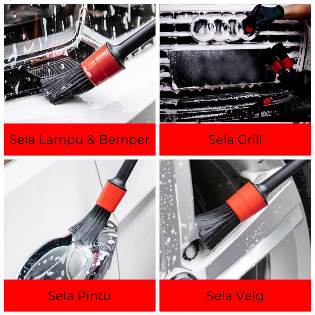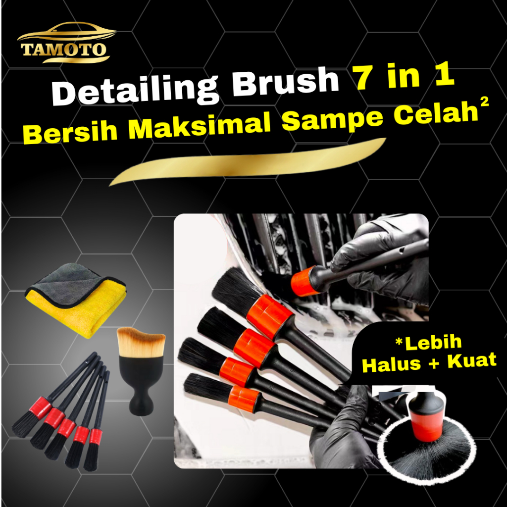 Detailing Brush 7 in 1 / Kuas detailing cuci motor mobil set lengkap / Sikat halus pembersih celah debu mesin velg inter
