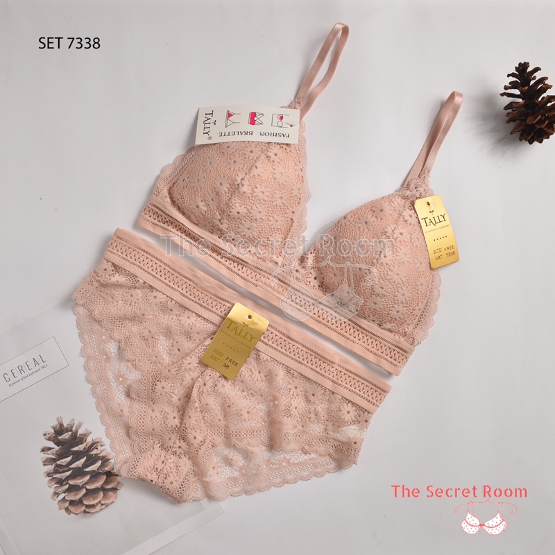 TALLY BRA BH CD SET KEMBEN BRALETTE RENDA 7338 I CUP B KECIL | FREE SIZE I ADA KAIT I BUSA TIPIS