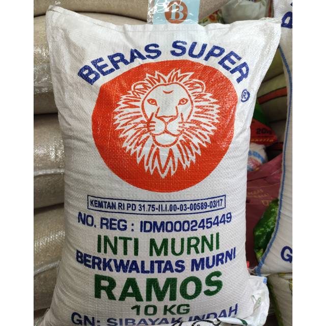 [Mall]ORI Beras Kepala Singa Super Ramos Inti Murni 10KG (Original 100%).