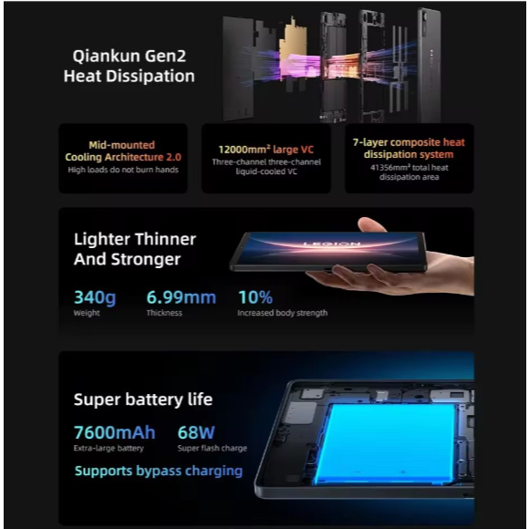 Lenovo Legion Y700 2025 4th Snapdragon 8 Elite TB322FC Gen4 12/256GB UFS 4.1 8.8" 3K 165Hz Gaming Tablet Android 15 ZUI1