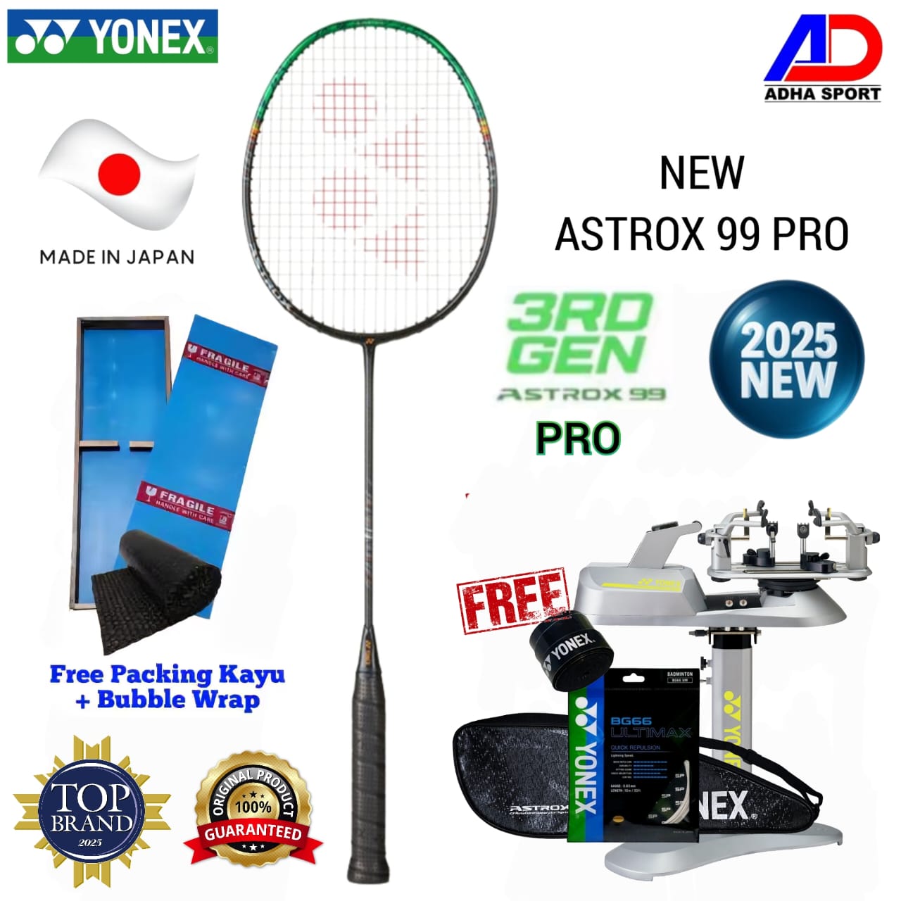 Raket Badminton New Yonex ASTROX 99 Pro 3rd Generation Black Green 3AX99-P Original