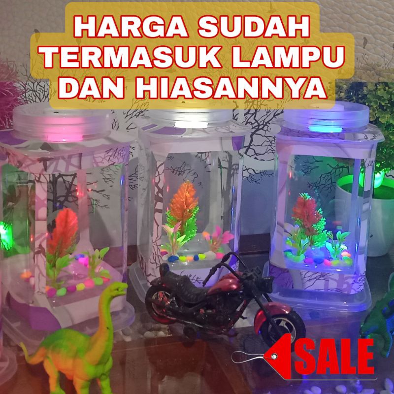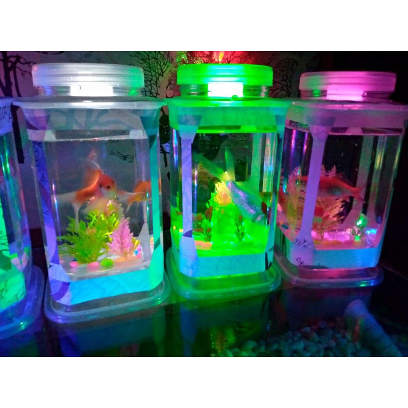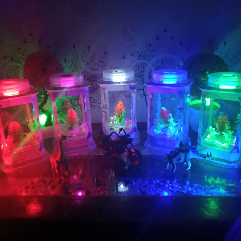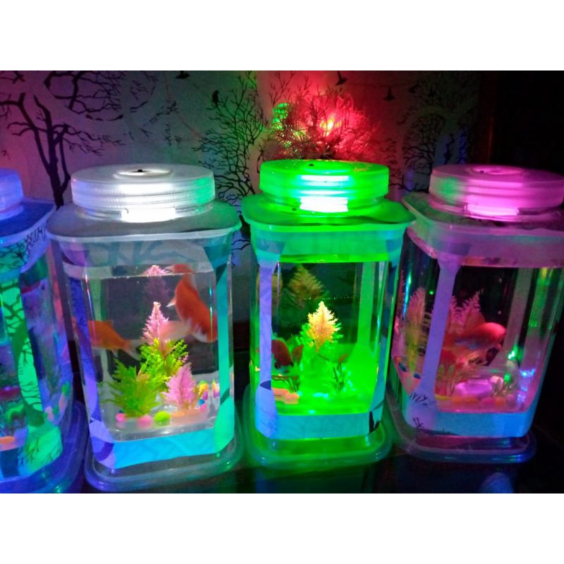 Aquarium Ikan Cupang Hias Mini Bentuk Persegi Hiasan Kamar Tidur Lampu Warna Akuarium Cupang murah