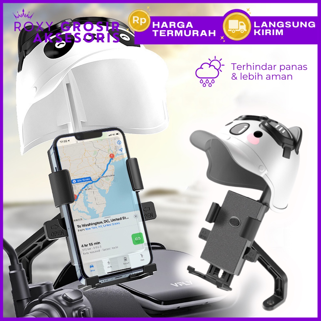 Holder Motor Spion Plus Helm Topi Karakter Lucu Penyangga Dudukan Hanhone di Spion Motor dengan Penutup Pelindung