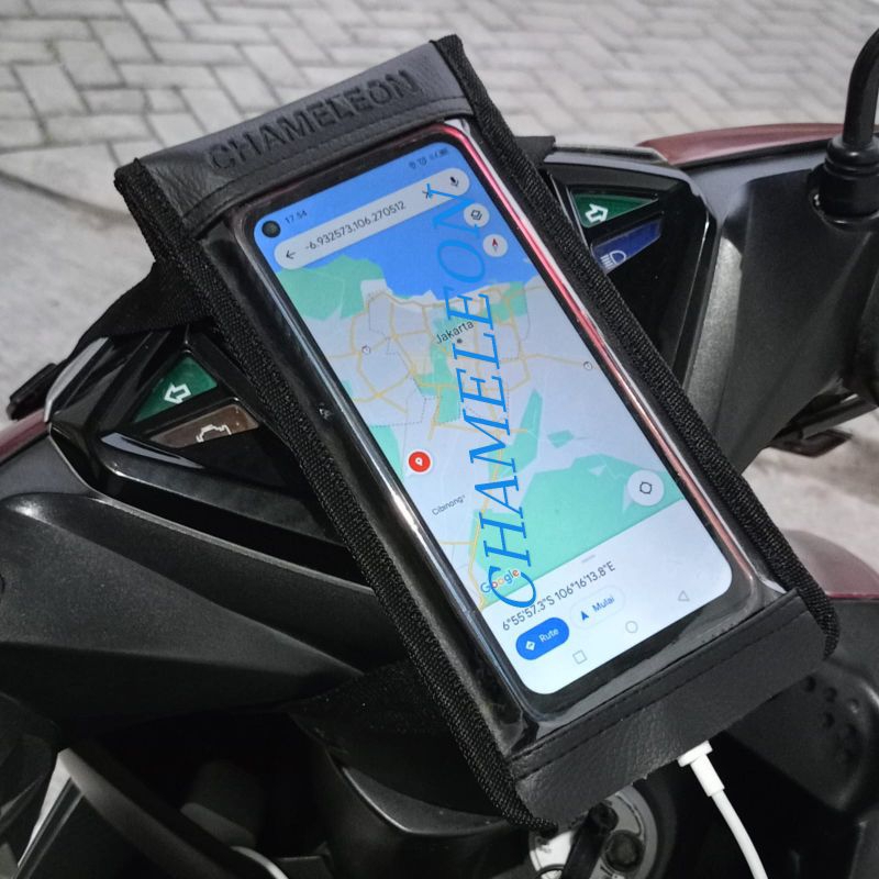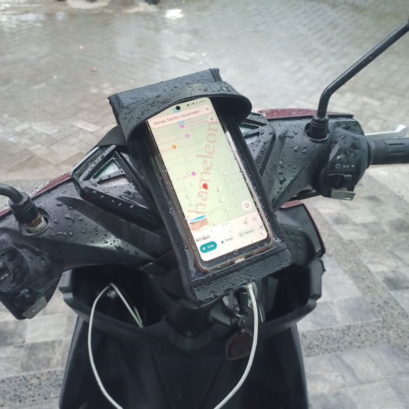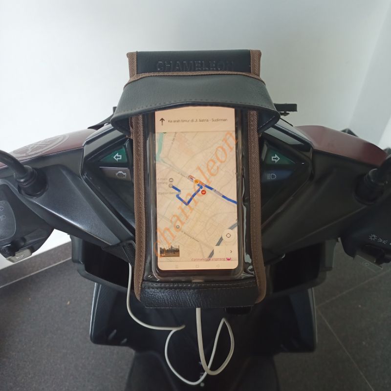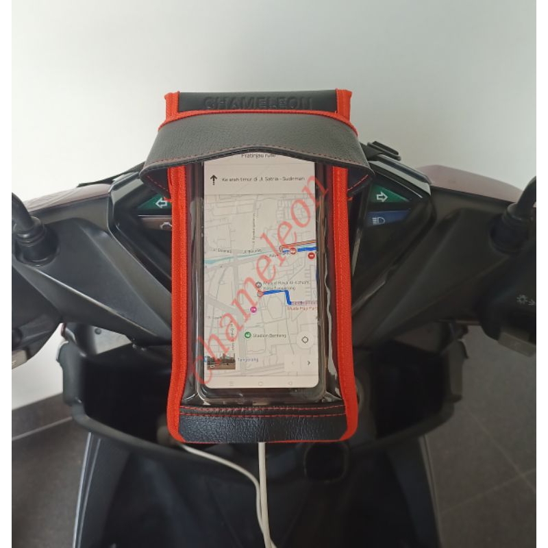 Chameleon Holder Motor Bertopi Anti Silau & Waterproof Bahan Kulit Sintetis Tebal Dilengkapi Lubang Cger dan Headset un