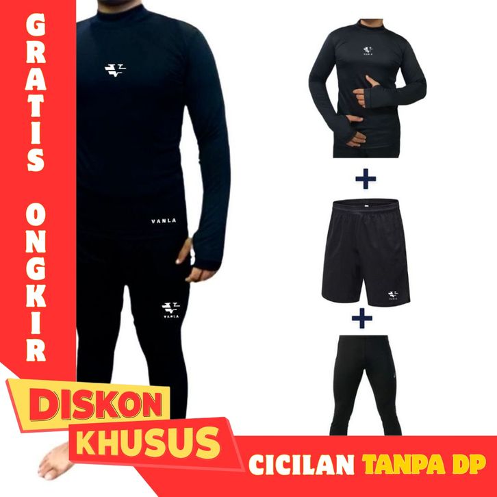 LARIS!! PAKET SETELAN BASELAYER PRIA BAJU MANSET OLAHRAGA CELANA PENDEK DAN LEGGING PANJANG SPORT RUNNING