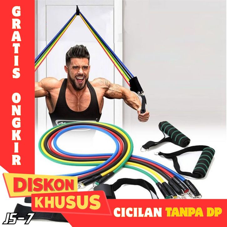LARIS!! TALI STRETCHING PILATES TUBE YOGA FITNESS 11 SET FREE BAG JS-7