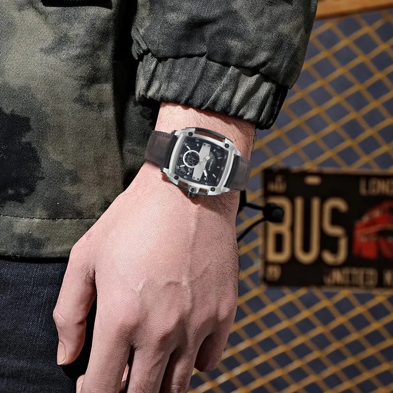 [Mall] Jam Tangan Pria Analog Tubular 5715 Original Tali Kulit Detik Bawah Tanggal Aktif Free Box Garansi 1 Tahun