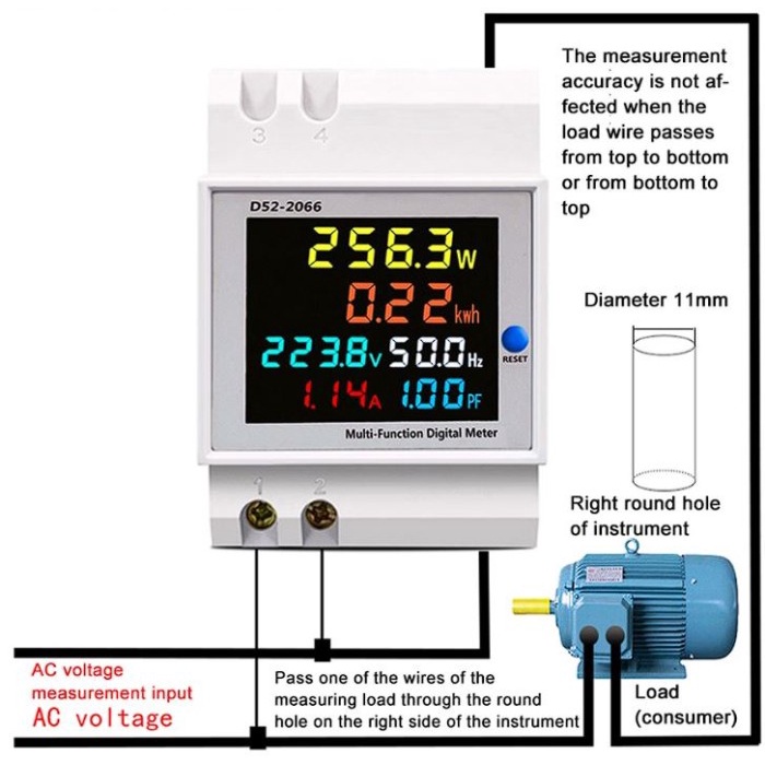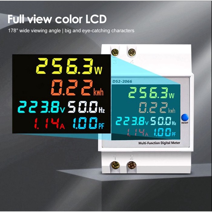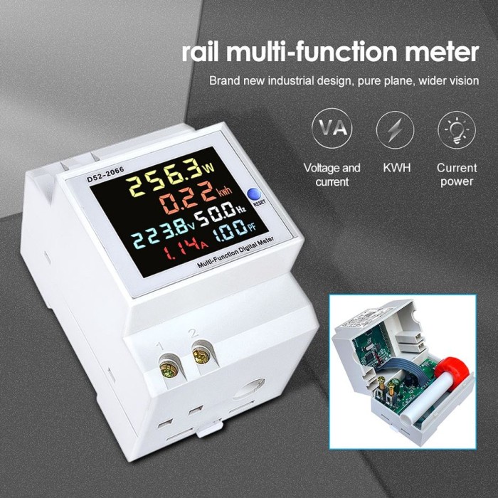 D52 2066 DIN RAIL AC MULTI WATT METER VOLT AMPERE KWH COS PHI 2 COLOR