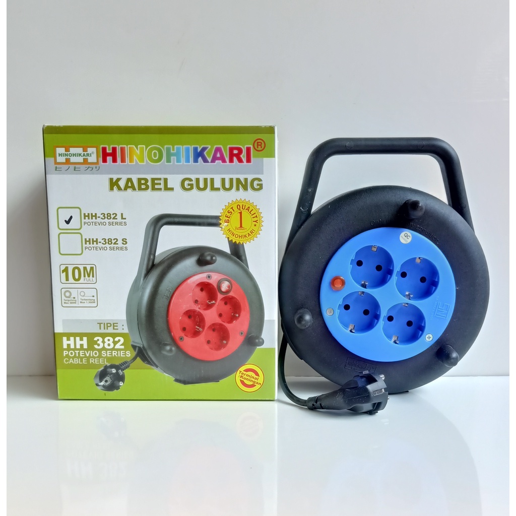 HINOHIKARI BOX KABEL GULUNG ROLL 4 LUBANG LAMPU / SAKLAR + KABEL 10 METER HH 382 S / L LAMP / SWITCH STANDAR SNI WARNA RANDOM