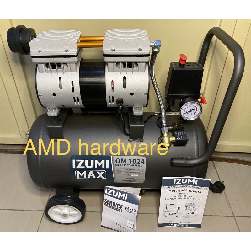 Mesin Compressor Kompresor Oilless Angin 1HP 24L Izumi OM1024 Kompressor Tanpa Oli Silent