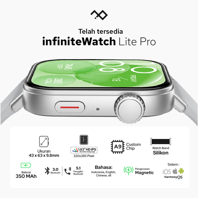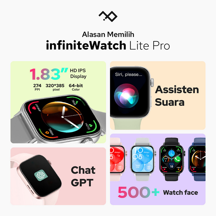 infinite Watch Lite Pro 1.83" HD IPS Infinity Display Smartwatch Running Sport Mode 100+ Waterproof Support Android IOS