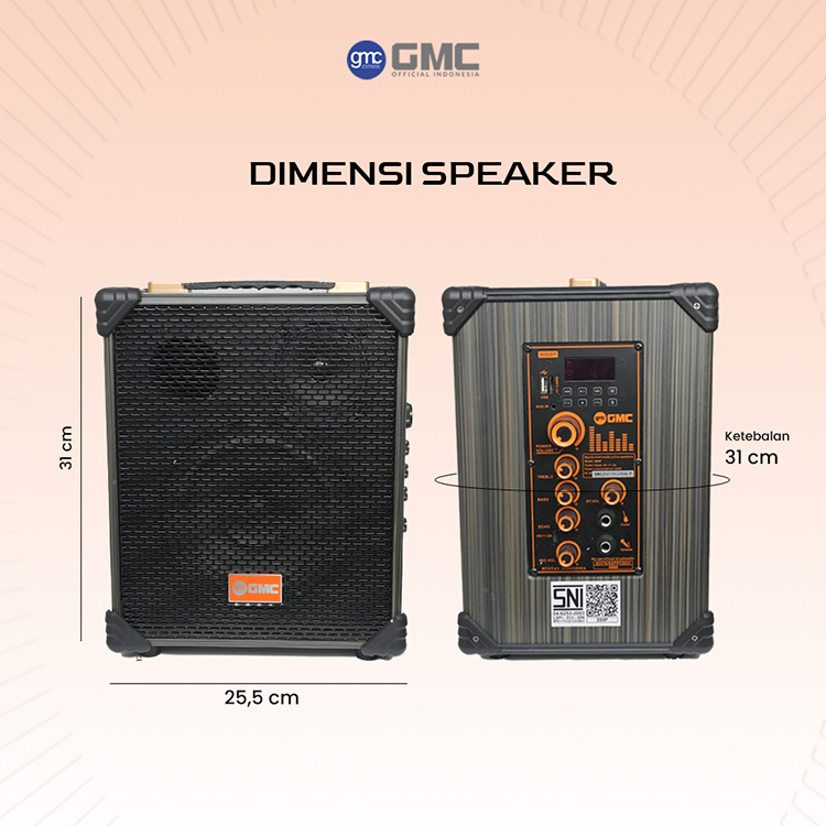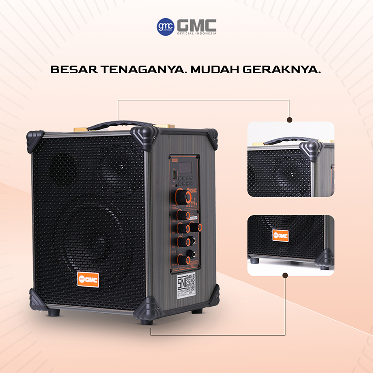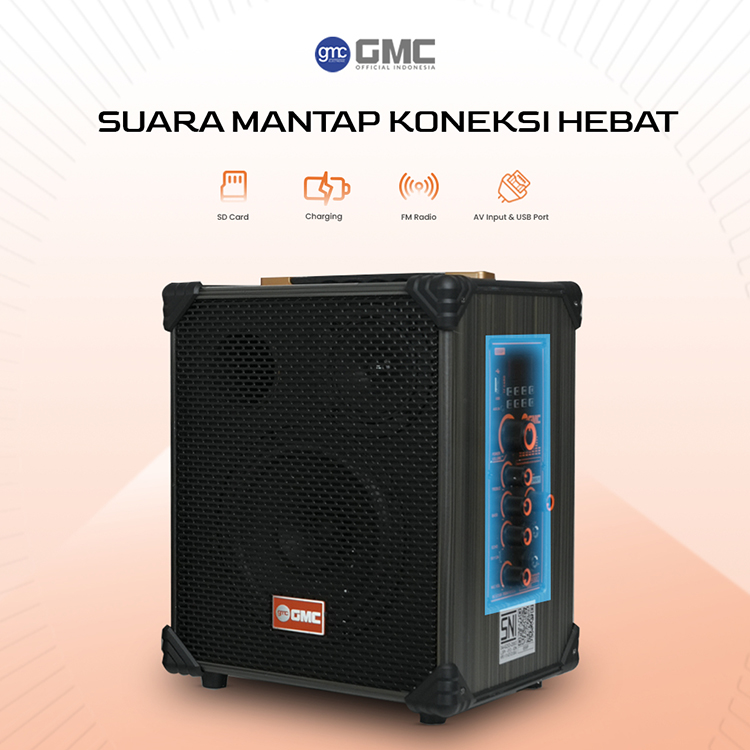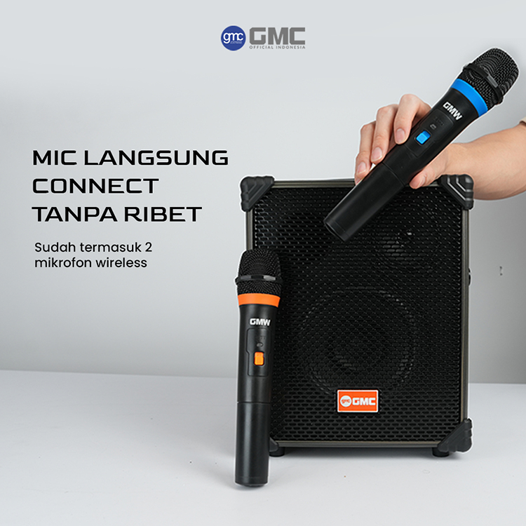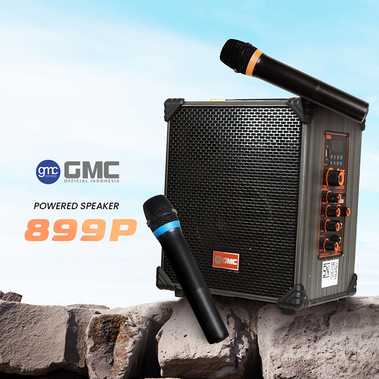 GMC Speaker 899P – Speaker Karaoke Bluetooth 6.5"– 120W, 2 Mic Wireless UHF, USB, SD, AV In, RadioFM