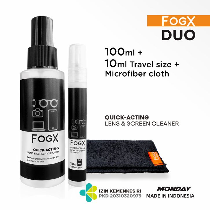 FOGX DUO Cairan Pembersih Kacamata / Pembersih Layar Hp Lens Cleaner 100ml + 10ml Travel Size