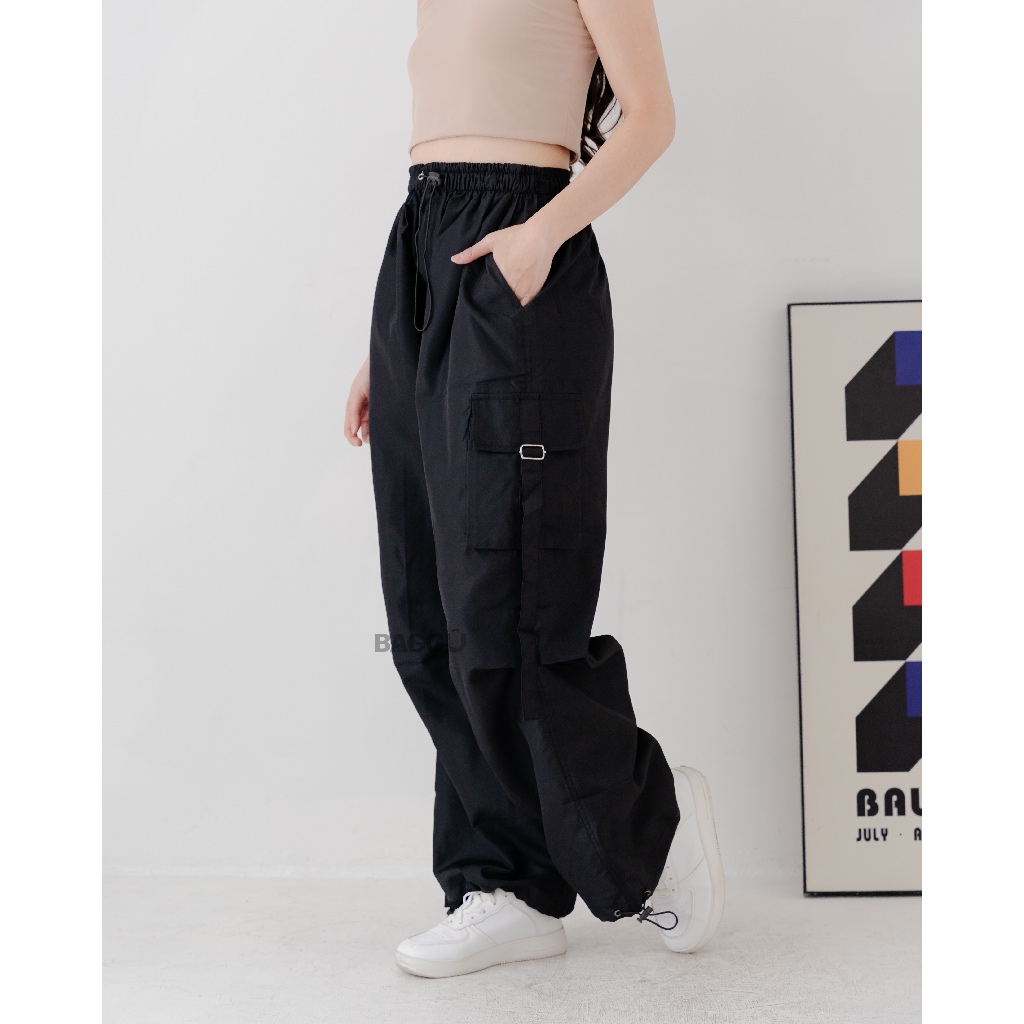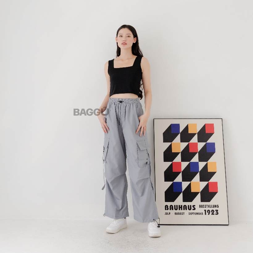 Cargo Pants Jennie - Grey - Celana Cargo Nylon Parasut Panjang Loose Pants Streetwear Korean Style Unisex Baggu
