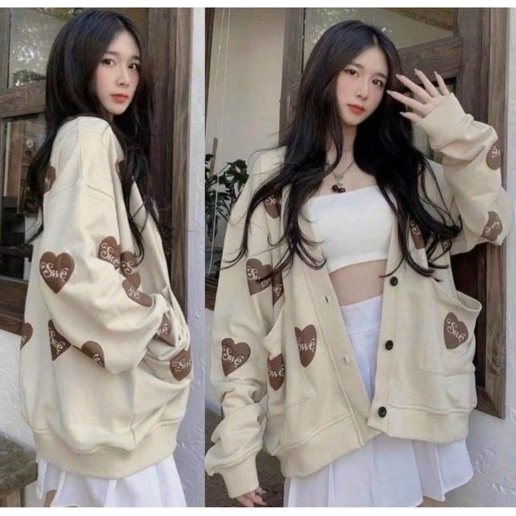 Cardigan Oversize Wanita Motif Love Kardigan Outher Korean Style Allsize