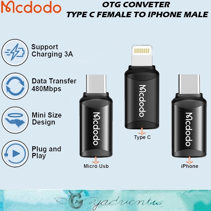 Mcdodo Ot-0510 Type C to Lightning Ot-7700 Lightning to Type C Ot-9970 Micro USB to Type C Untuk iPhone Samsung Android Connector Adapter Kabel Charger Pd Fast 3a