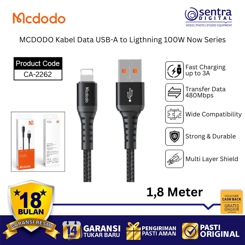 MCDODO CA-2262 Kabel Data Charger Now Series USB-A to Lightning 100W Fast Charging iPhone iPad