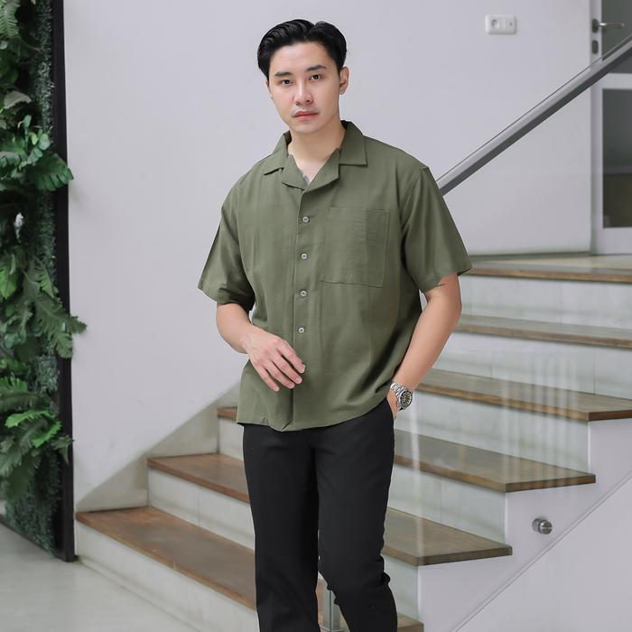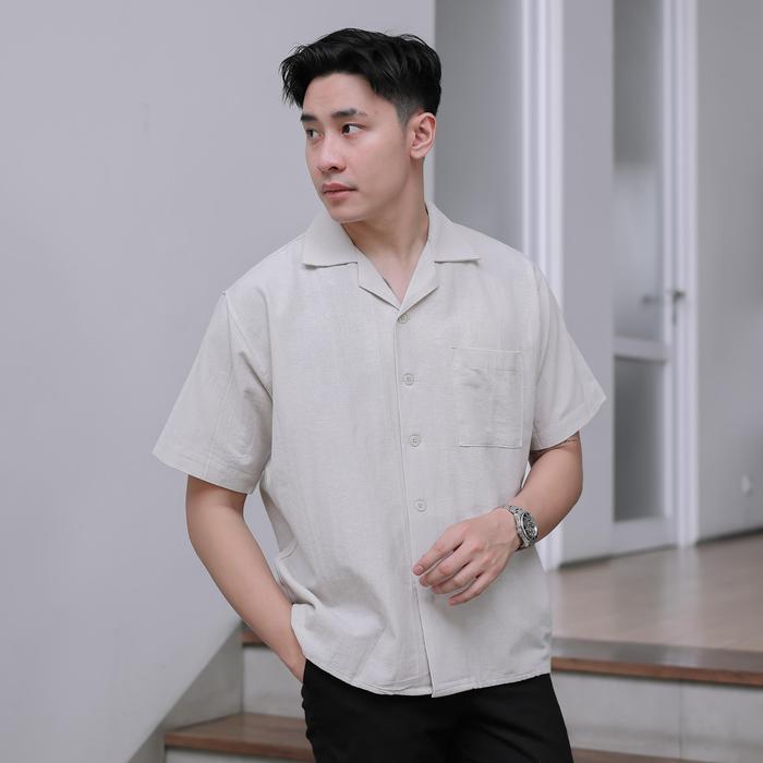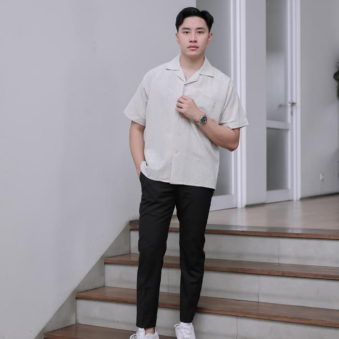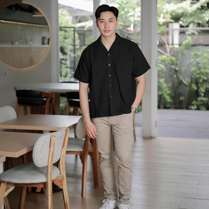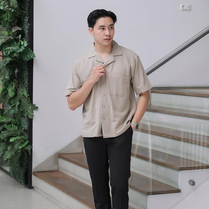 Lifesky Kemeja Linen Cuban Dammy Oversize Formal Casual Basic Variasi Coffee Mocca Hitam Atasan Pria