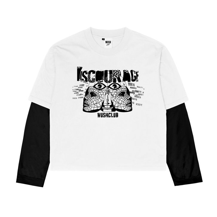 NEW Wush Club Kaos Boxy Oversize Double Sleeve Pria Wanita Double Layer Longsleeve Unisex Kekinian DISKO PUTIH
