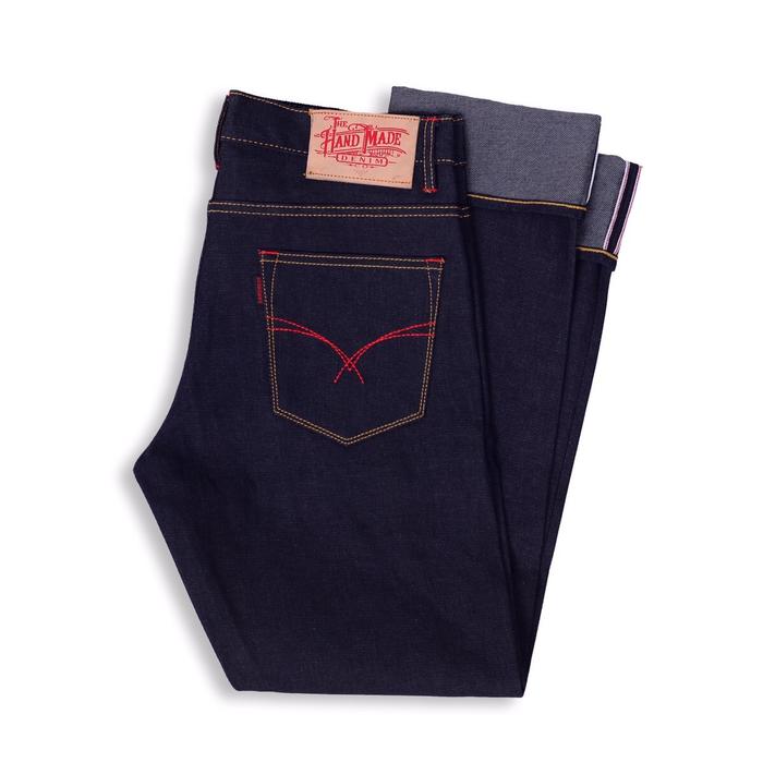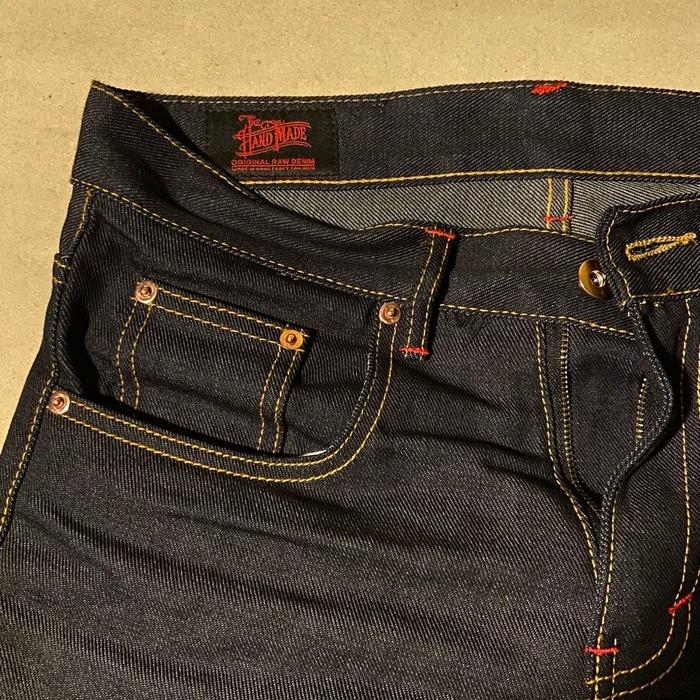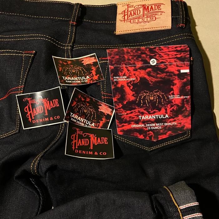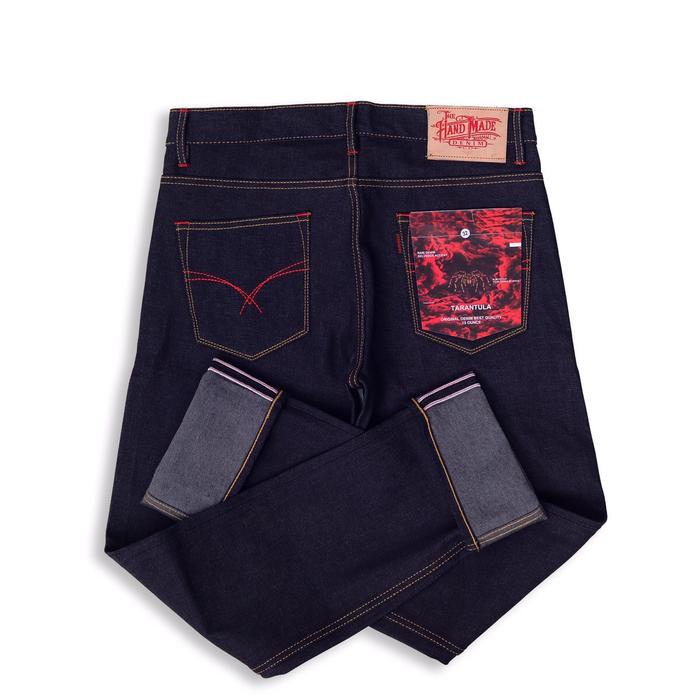 Raw denim selvedge accent red line harga pelajar THE HAND MADE ORIGINAL artikel TARANTULA sanforized 15 oz kaku