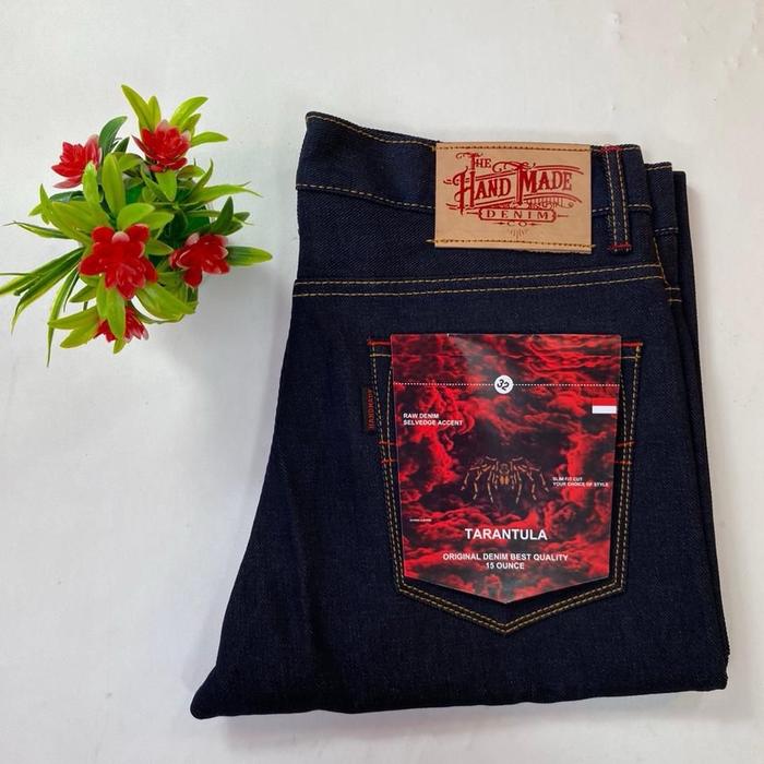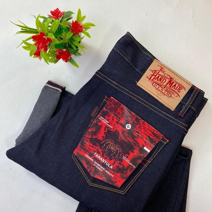 Celana Denim Handmade Selvedge - Black Indigo - Hitam Slimfit Kaku 15oz - High Class Pria Distro