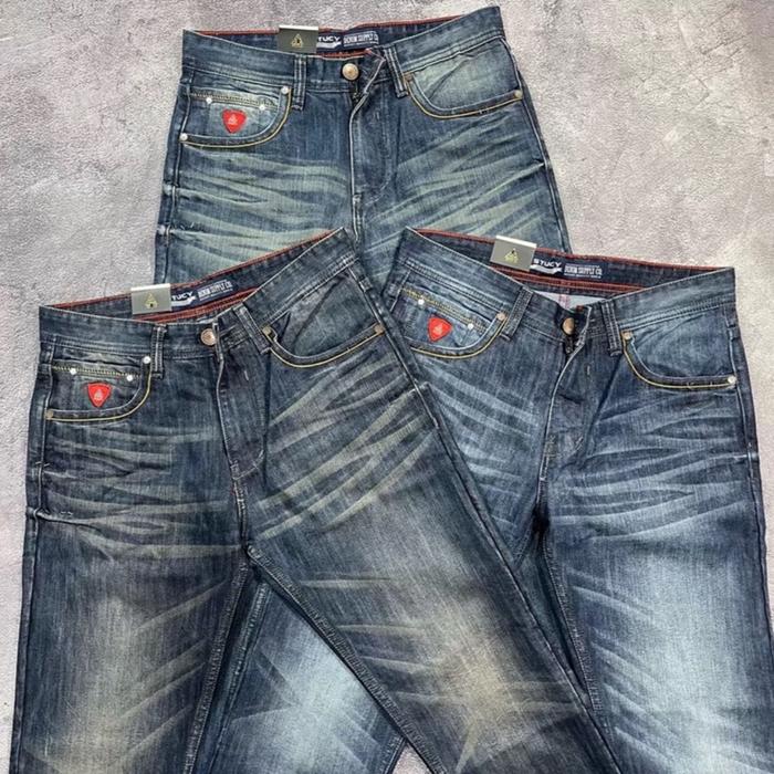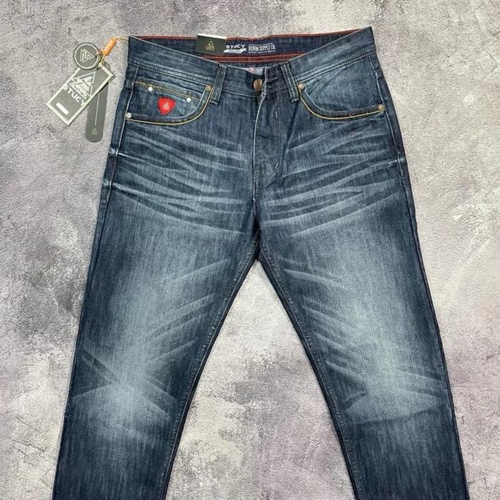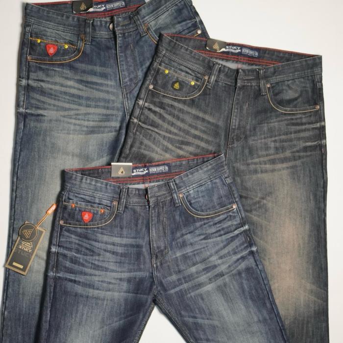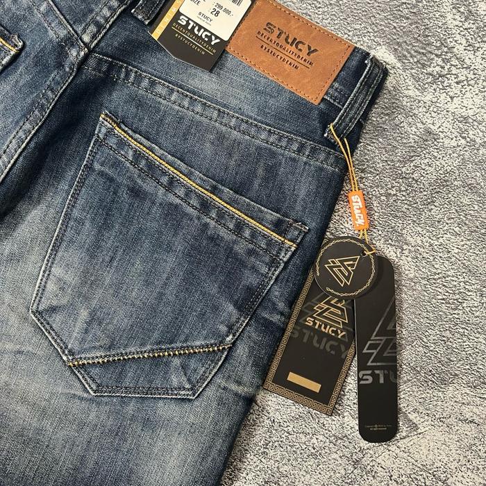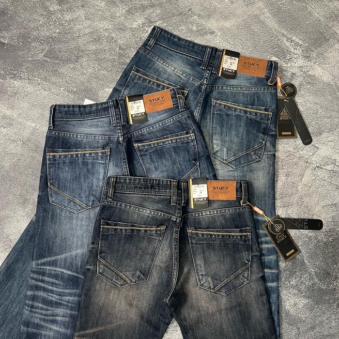 [STUCY]Celana Fading Jeans With Knit selvedge accent Straight Slim (non-stretch)