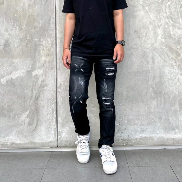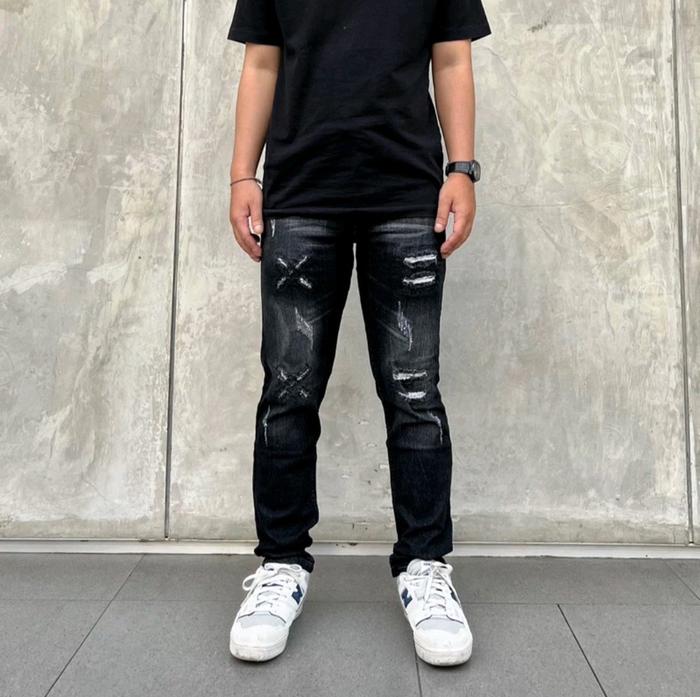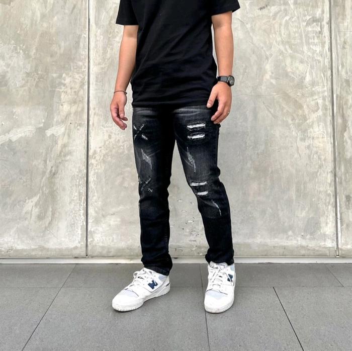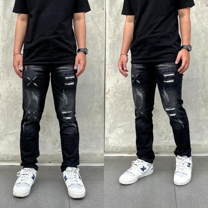 Celana Jeans Pria Panjang Denim Sobek Slimfit Stretch Black Letro XX Authentic Original Hight Premium Distro