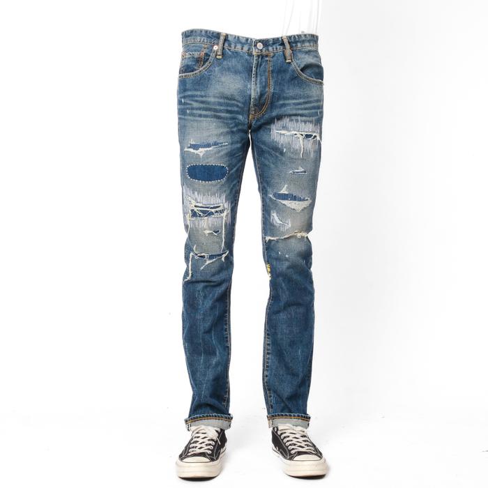 Bespoke Project - Celana Jeans pria Glytter Patchwork ripped