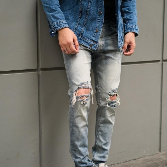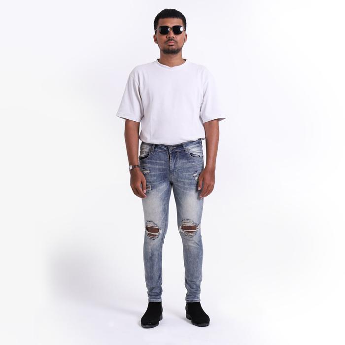 Weird Jeans - Vintage Blue - Celana Jeans Panjang Pria SlimFit Strech Ripped Biru Denim Fit Nyaman
