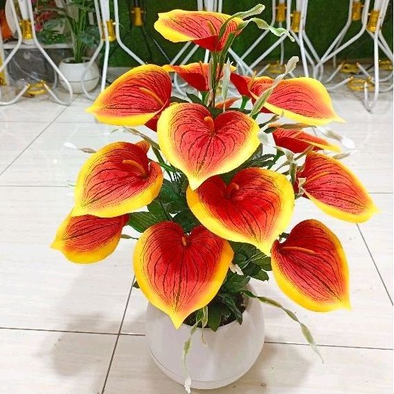 Bunga sudut anthurium bunga lilly aron dengan pot bola jumbo dekorasi rumah estetik