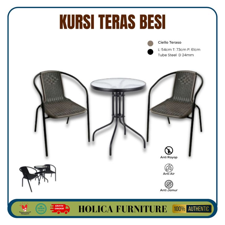 Kursi teras depan rumah Kursi + Meja Teras Set ( Meja kaca + Kursi Rotan) - kokoh jaminan termurah