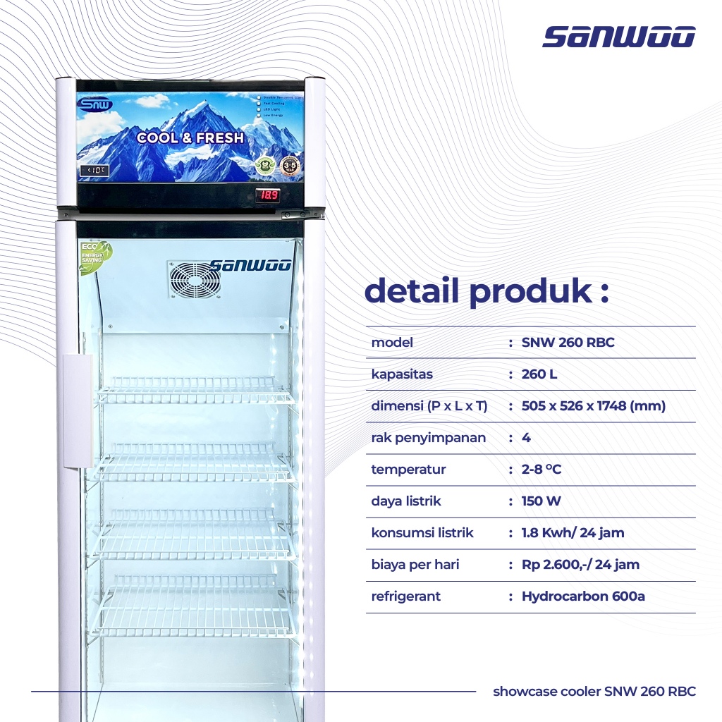 [Mall] PROMO KULKAS SHOWCASE MURAH SANWOO SNW-260RBC 260 LITER KULKAS 4 RAK KULKAS WARUNG BISA CICILAN TANPA DP