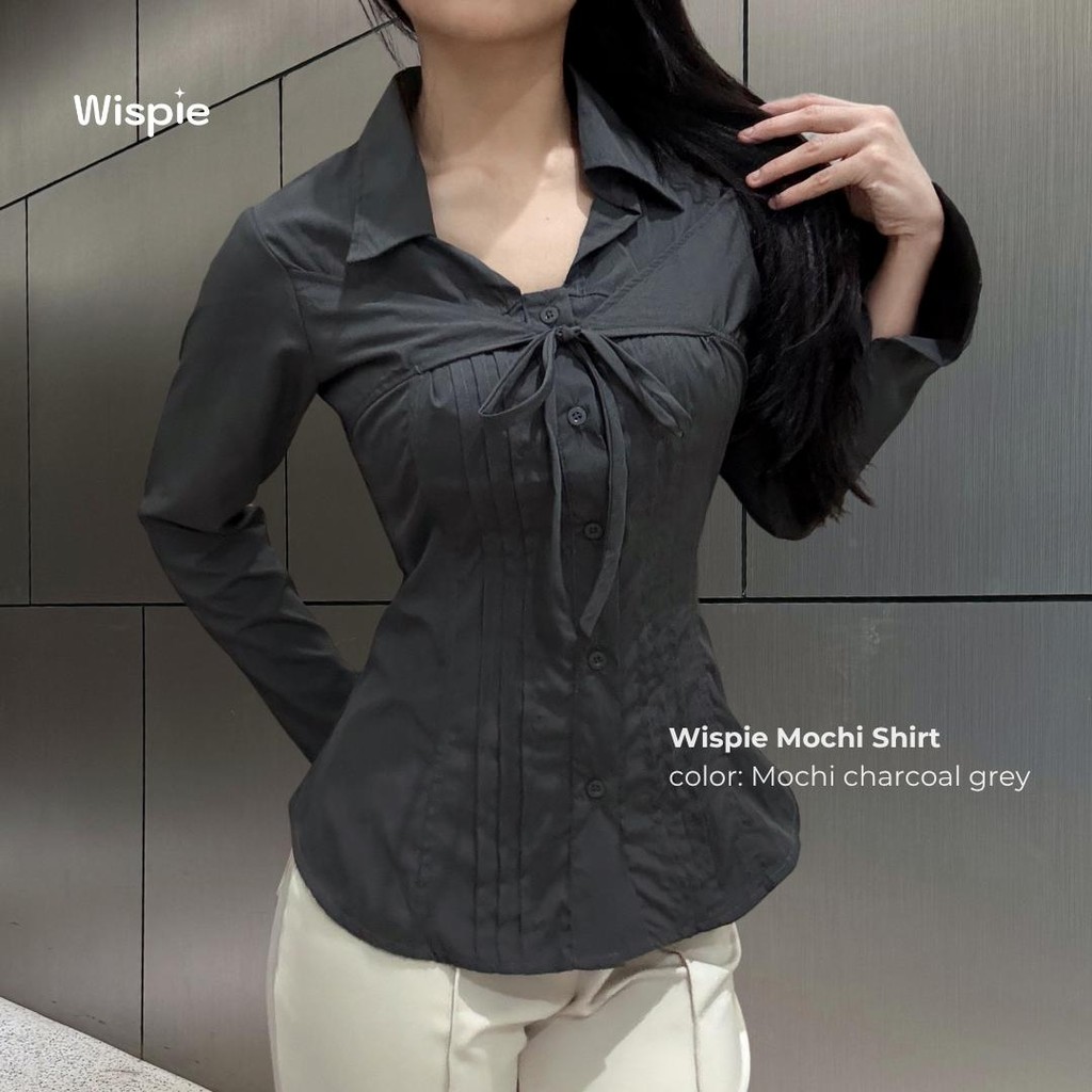 Kemeja Wanita Korean Lengan Panjang Estetik Tali Pita Slim Fit Soft Touch Parachute Kekinian