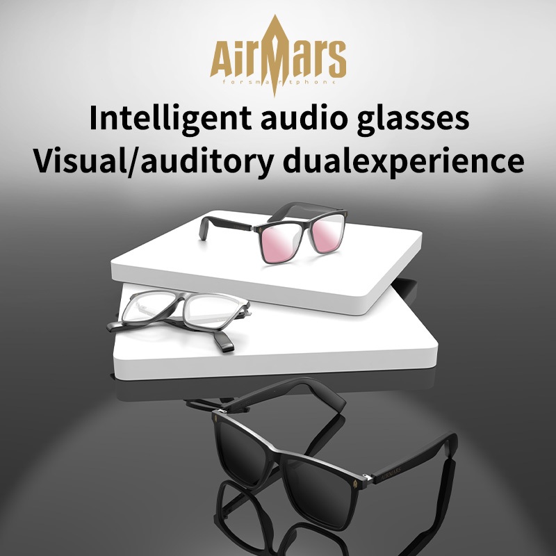 Earphone AIRMARS SG8 Kacamata Hitam Musik Pintar Nirkabel Headphone Suara HIFI Mikrofon HD
