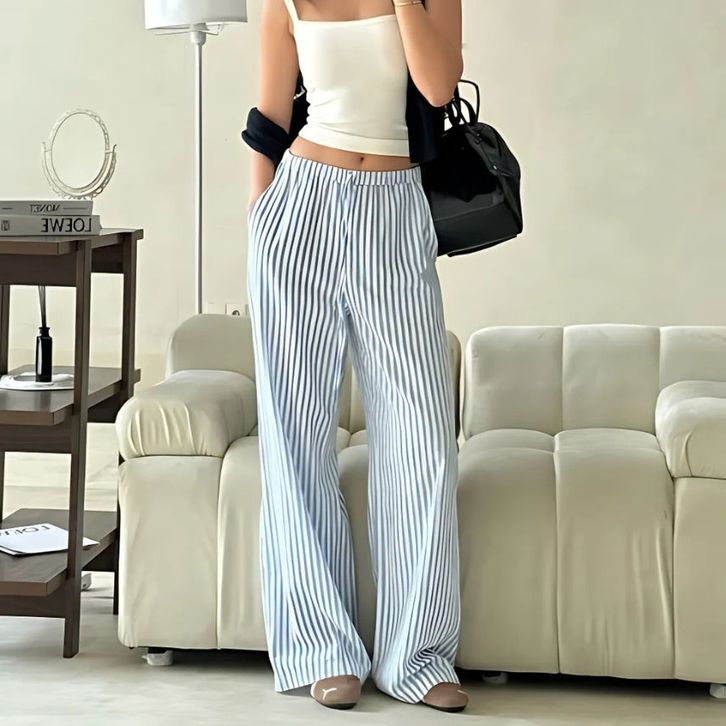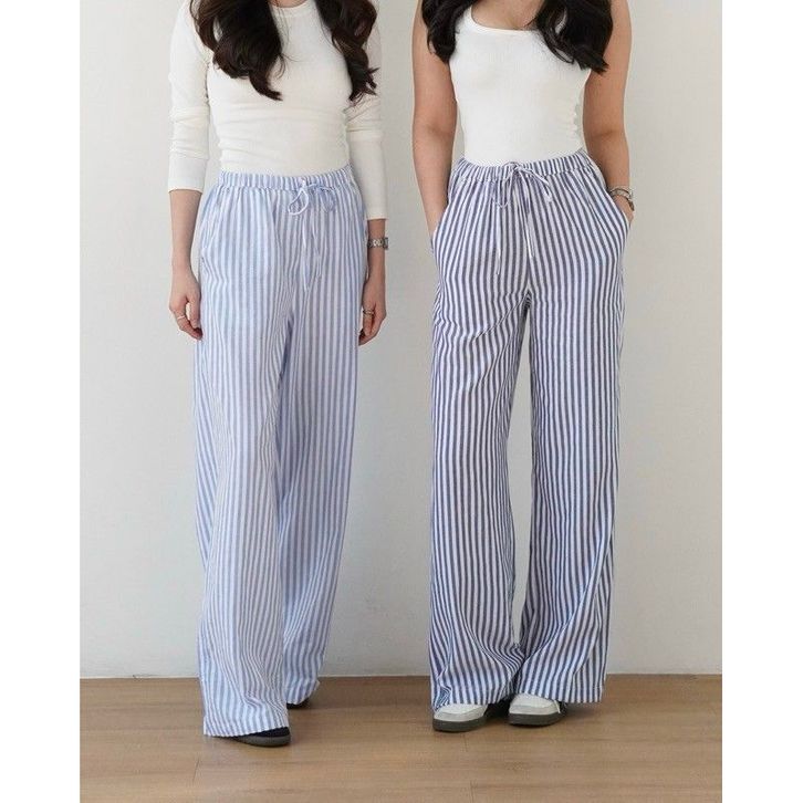 Celana Panjang Wanita Kekinian - Celana Garis Garis Wanita Highwaist Terbaru - Kulot Stripe Pants