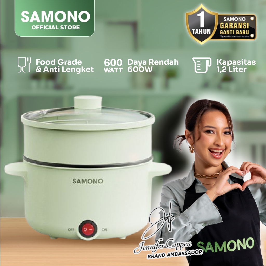 Panci Listrik 1,2L Dengan Kukusan Multi Cooker 600 Watt Food Grade Inner Pot Lapisan Ganda SW-DG04 Garansi 1 Tahun