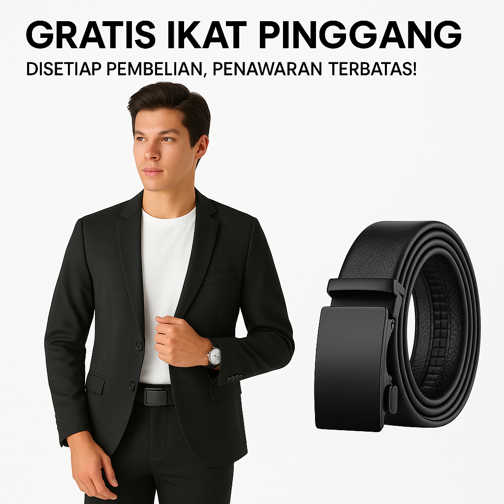 SPESIAL Bundling Jas Blazer Hitam Pria dan Ikat Pinggang Slimfit 2 Kancing Semi Wool