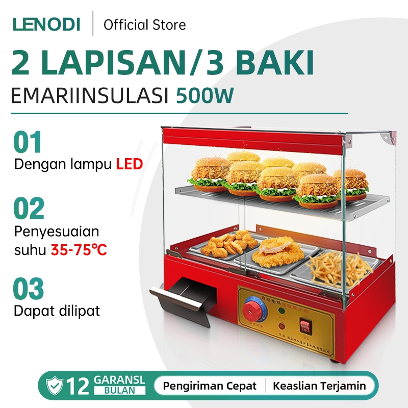 LENODI Termostat Isolasi Kualitas makanan Komersial Kabinet Pemanas Chestnut Tart Roti Kaca Deli Kabinet Makanan Jenis D