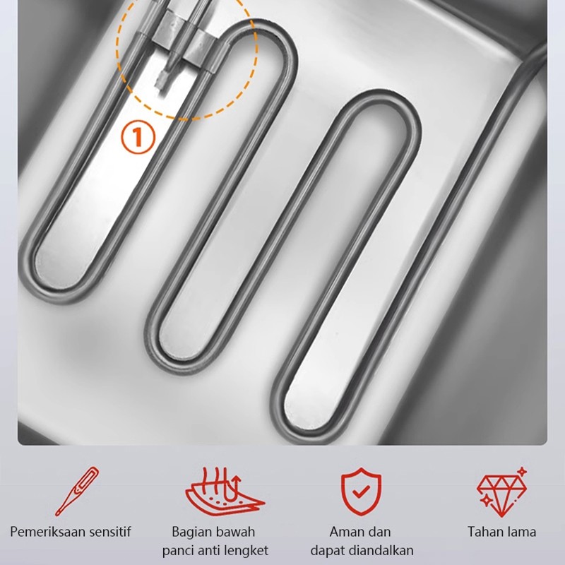 LENODI 8L Penggoreng Listrik, Penggorengan Dalam, Multifungsi, Kental, Kapasitas Besar, Ayam Goreng, Kentang Goreng, Tus