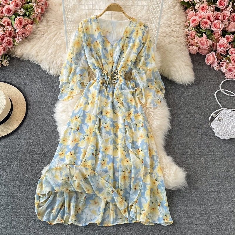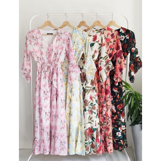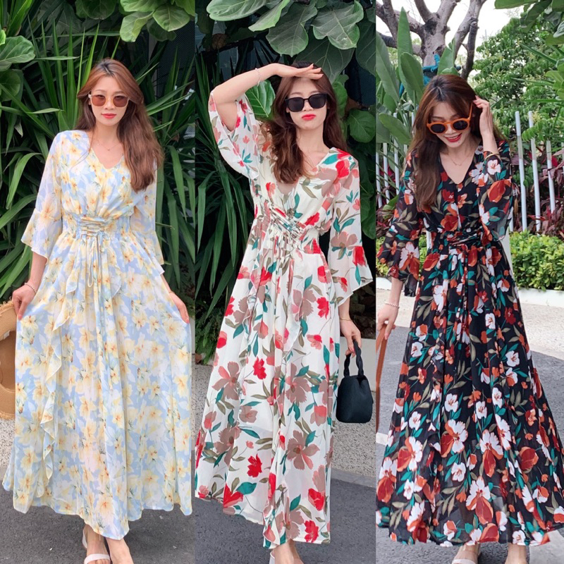 D1102 GENTLE KOREAN STYLE FLORAL VINTAGE MAXI DRESS PANTAI BUMIL HIJAB