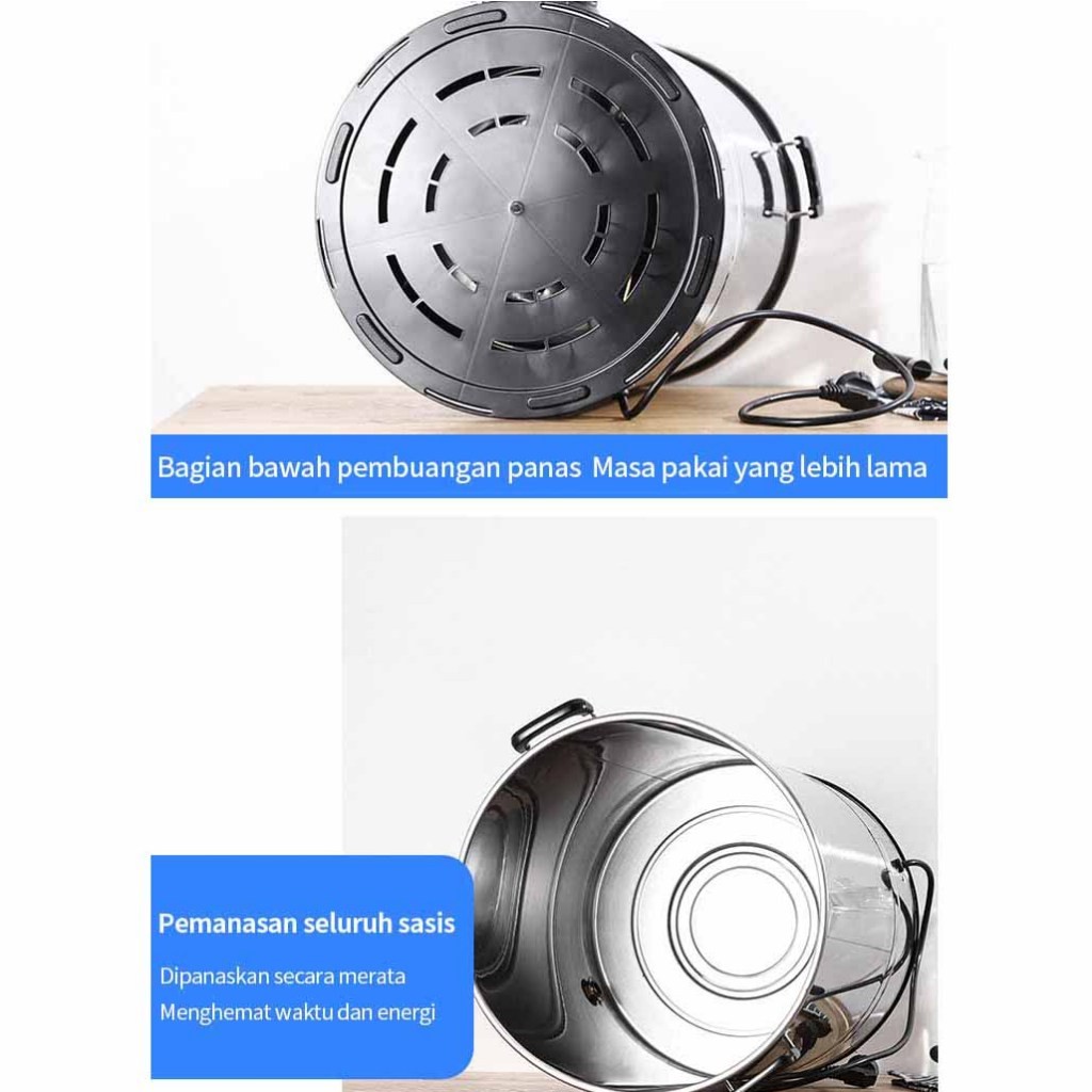 LENODI Ember mendidih air pemanas listrik ember mendidih air baja tahan karat mengukus komersial kapasitas besar pemanas