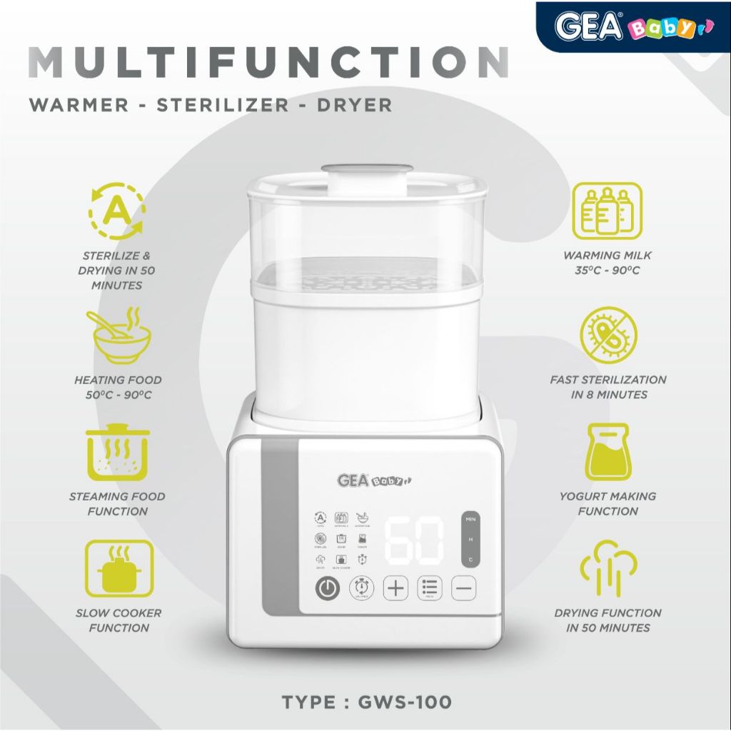 GEA Baby Multifunction Warmer Sterilizer Dryer GWS 100 / penghangat susu / sterilisasi / slow cooker