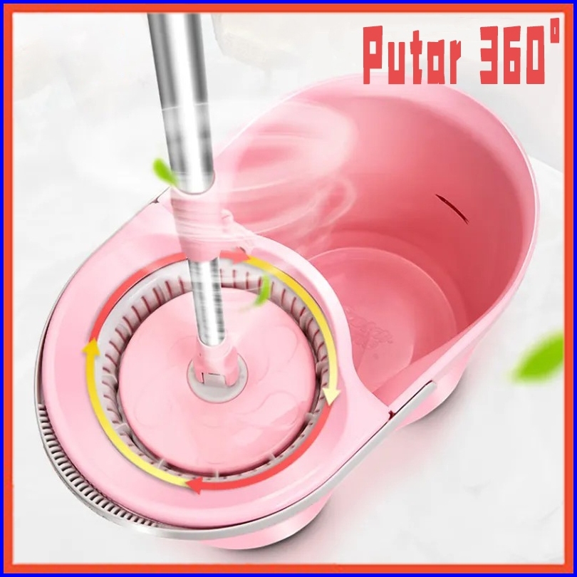 Hoptech - Pink Alat Pel Lantai Ultra Mop Pelan Lantai Spin Mop Pel Putar