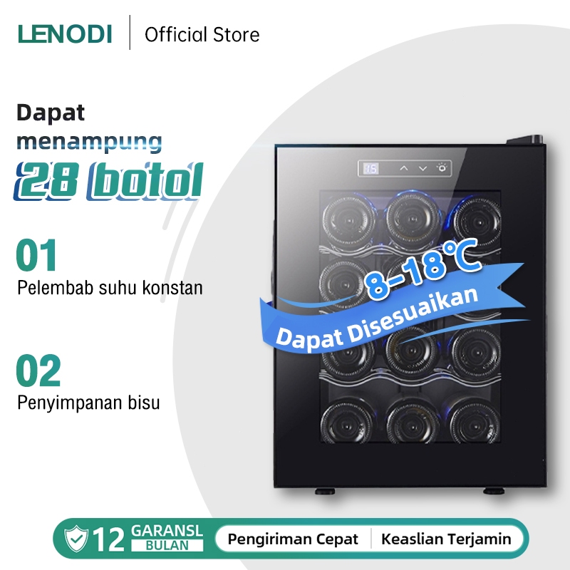 LENODI Lemari Anggur Bar Es Berpendingin Elektronik Suhu Konstan Sentuhan Cerdas Lemari Penyimpanan Anggur Senyap Lemari