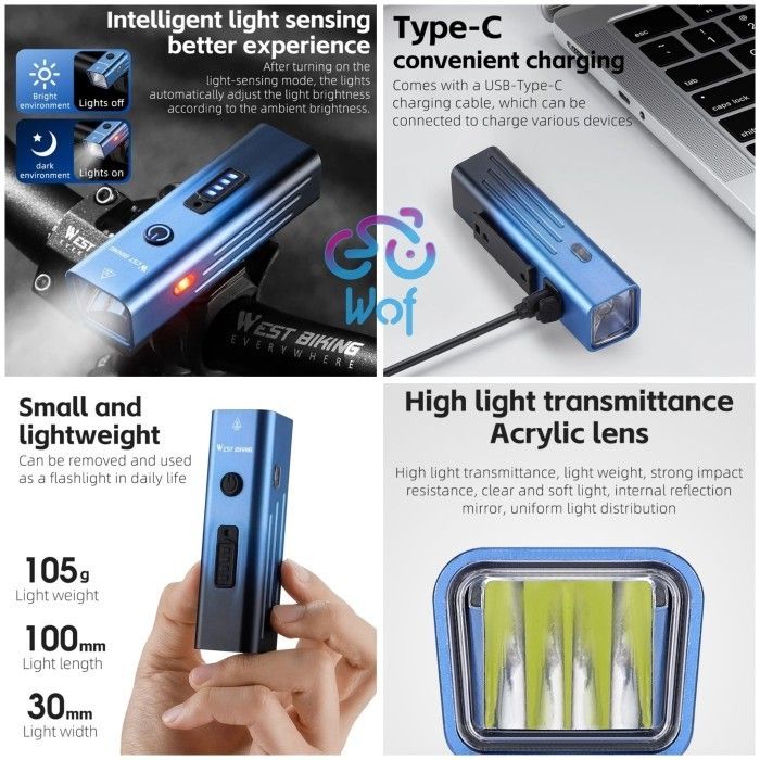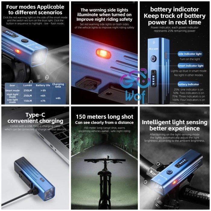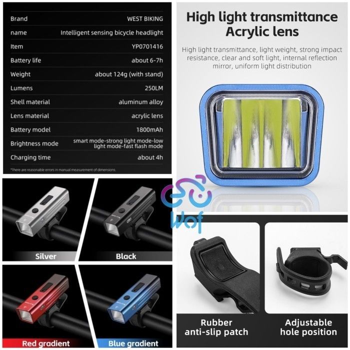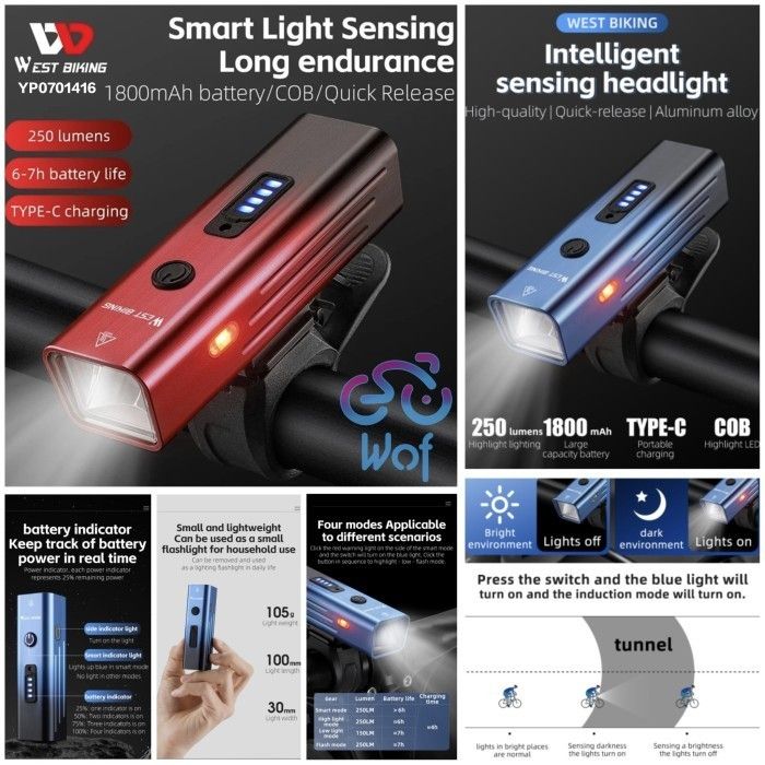 TERMURAH WEST BIKING 416 Lampu Depan Senter Sepeda Smart Sensor 250LM 0701416 ocicc