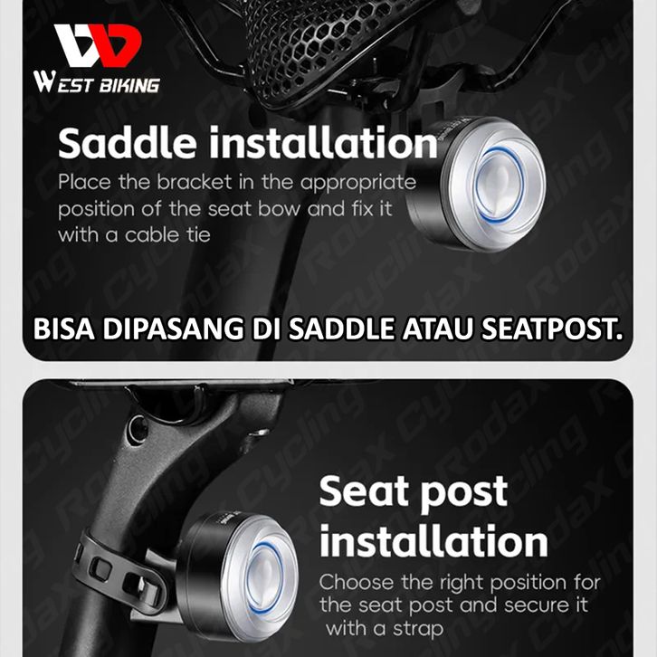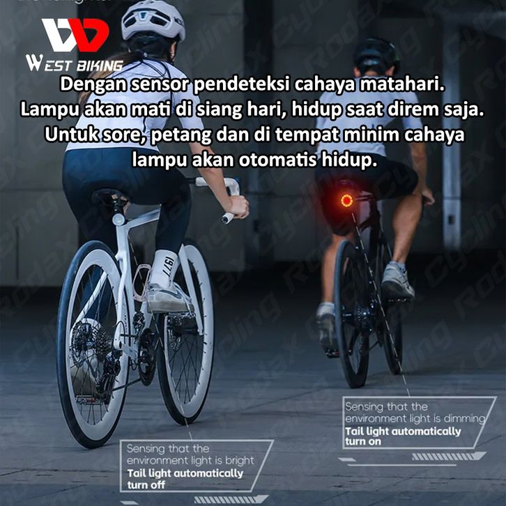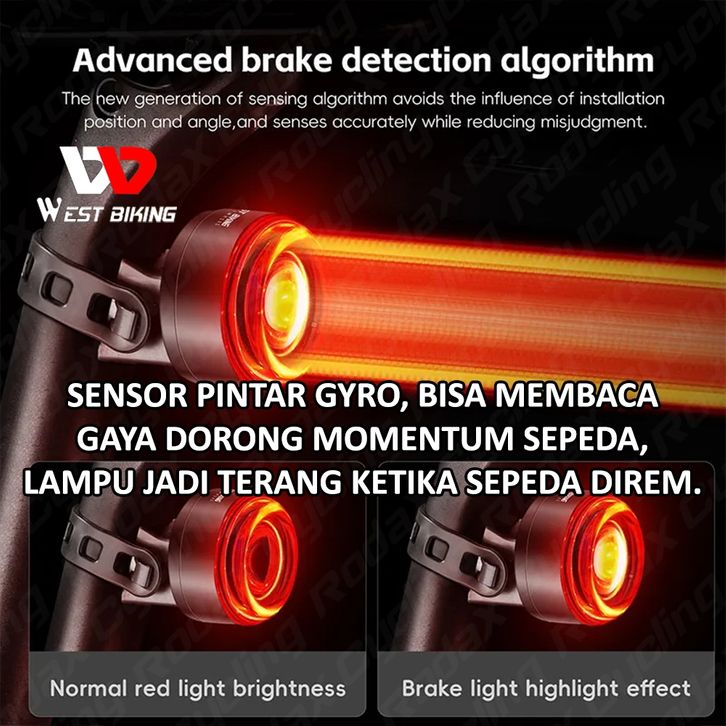 PROMO West Biking Projector Curved Taillights Lampu Sepeda Belakang Sensor Rem Otomatis Lampu Rem Sepeda Stoplamp