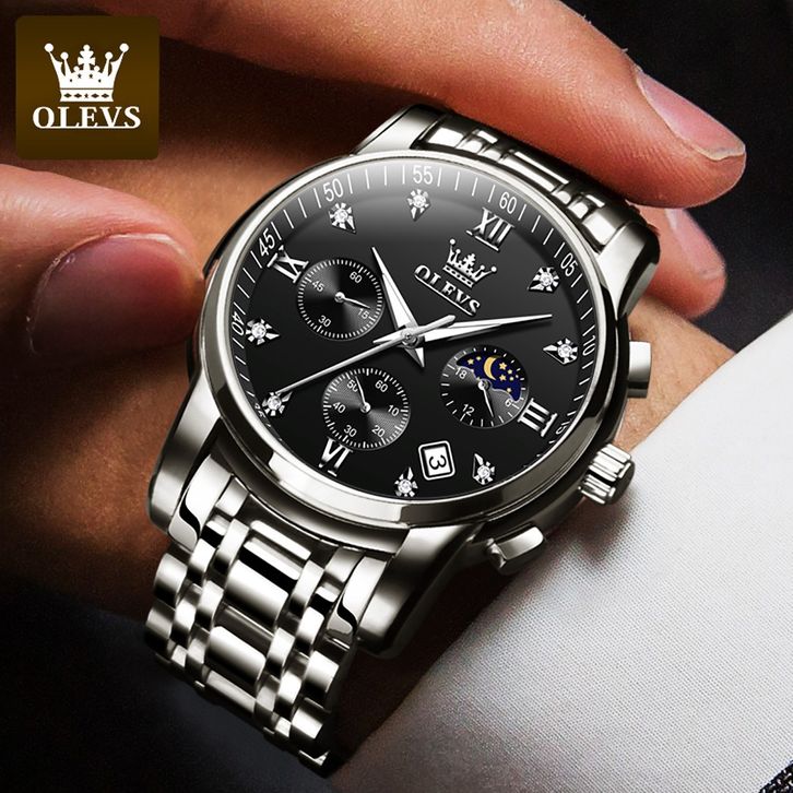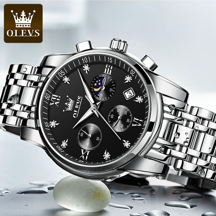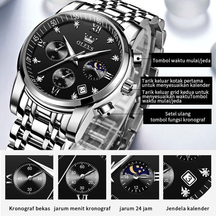 PROMO OLEVS Jam Tangan Pria Anti Air Original Stainless Steel Chrono Aktif Cowok Luminous Kalender Analog Men