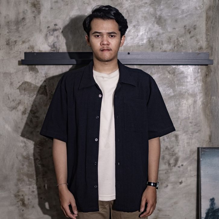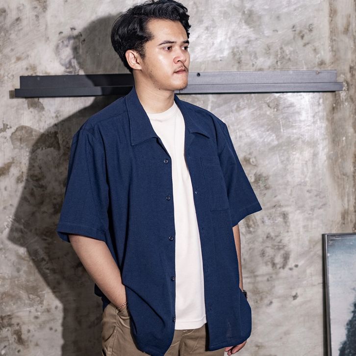 Howghstudios Bowling Boxy Oversized Linen Shirt | Kemeja Linen Bowling Polos Pria Kerah Terbuka Lengan Pendek