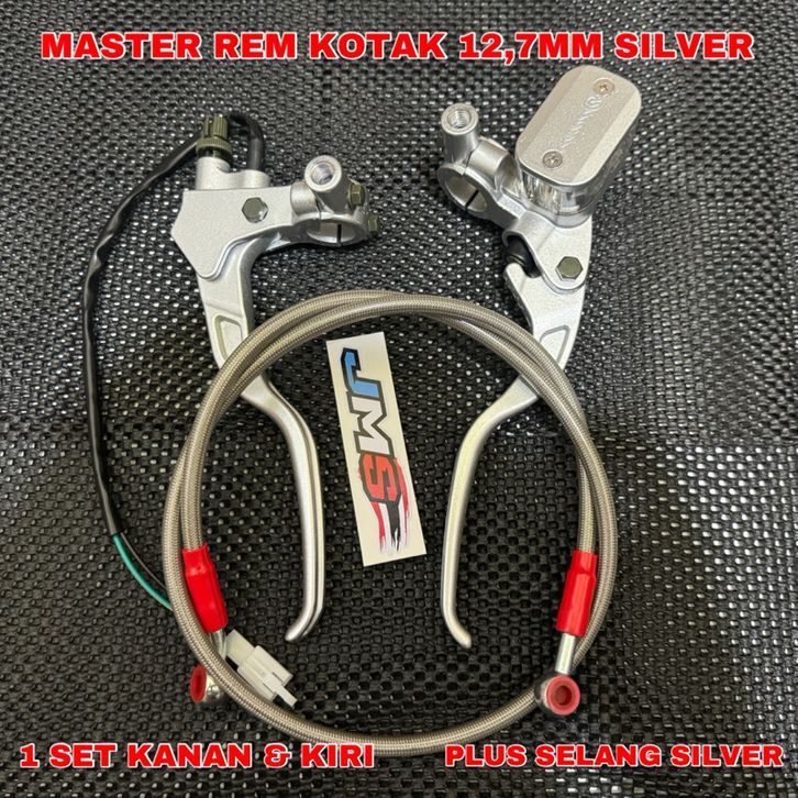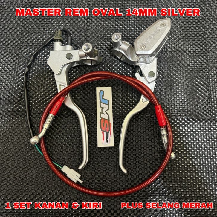 Terbaru Master Rem Set kanan kiri Tabung Kotak Dan oval Warna Silver Plus selang Rem depan panjang 95Cm Universal