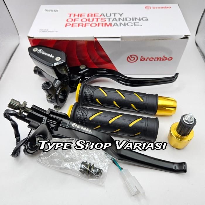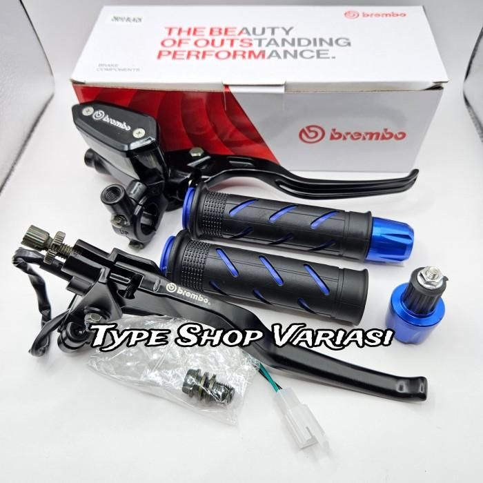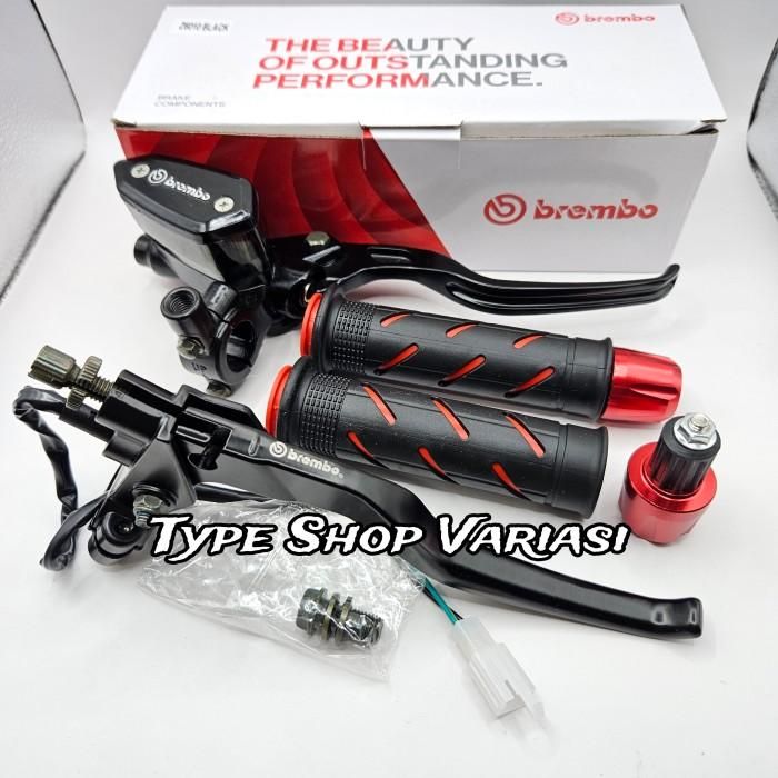 Paket 3in1 Master Rem Tabung Tipe Oval + Handgrip Sisik + Jalu Stang C - Merah - Merah